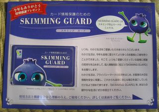 スキミングガード。非接触型ICのRFIDが普及してきたこの世の中だからスキミングも非接触型がでてくるわけよ。