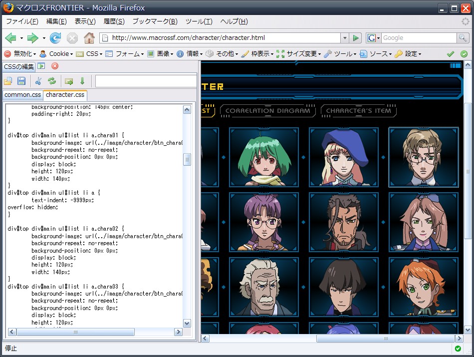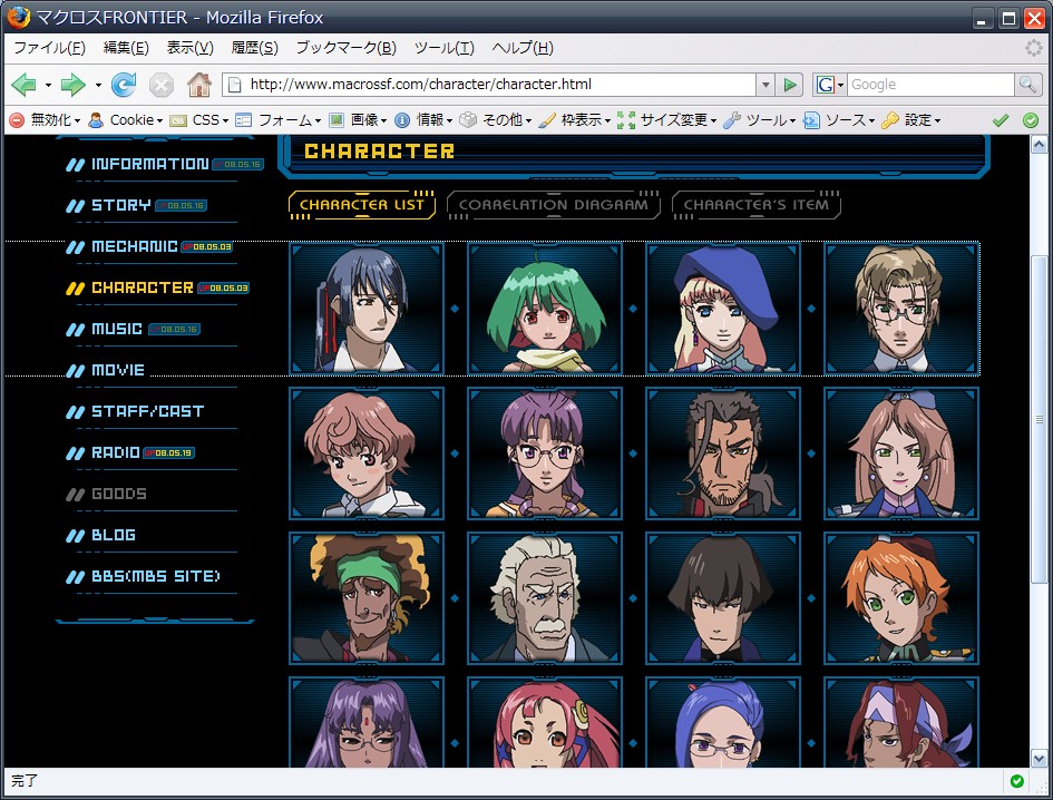 IEでは気づかなかったけどマクロスF公式サイトの人物紹介とかってクリックすると怪しい枠がでちゃうんですよね。