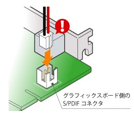 最近のGLADIACシリーズではもはやHDMIによる音声の同時出力が標準化されていて、マザーボードのS/PDIF端子と接続するだけで音声も同時にディスプレイに出力できるわけです。