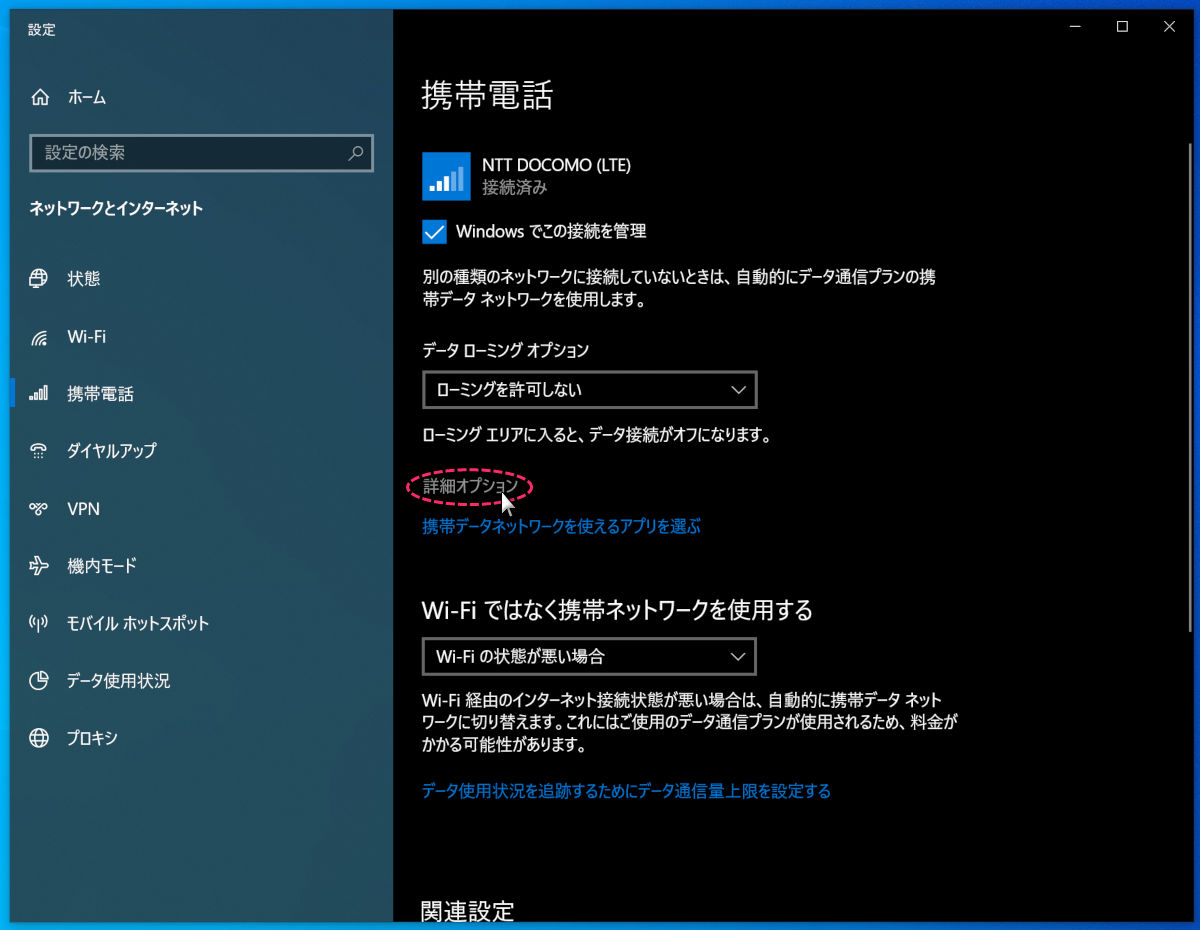詳細オプションをクリックしてください
