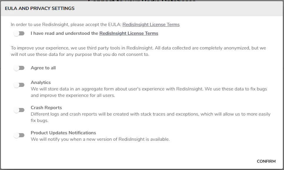 一番上のトグルスイッチをオンにして、右下のCONFIRMをクリックでOKです。