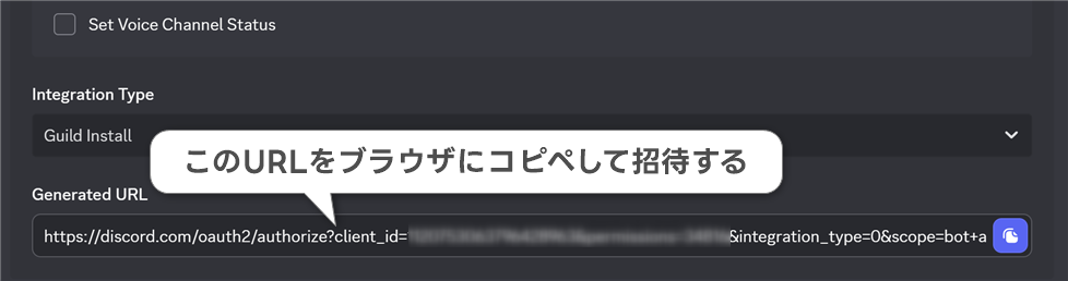 後は一番下の Generated URL をコピーし、ブラウザでアクセスしてサーバーに招待します。