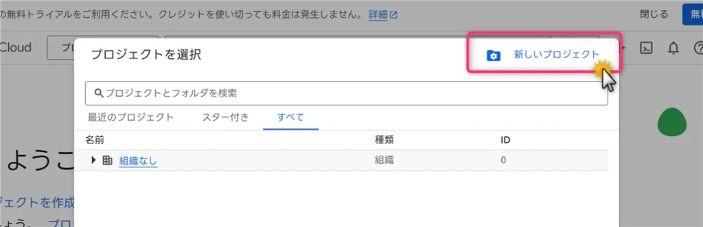 - 画面上部のプロジェクト選択から「新しいプロジェクト」を作成します(プロジェクト名は任意です)。